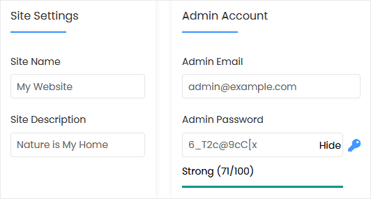 • Admin Email: Your e-mail address.